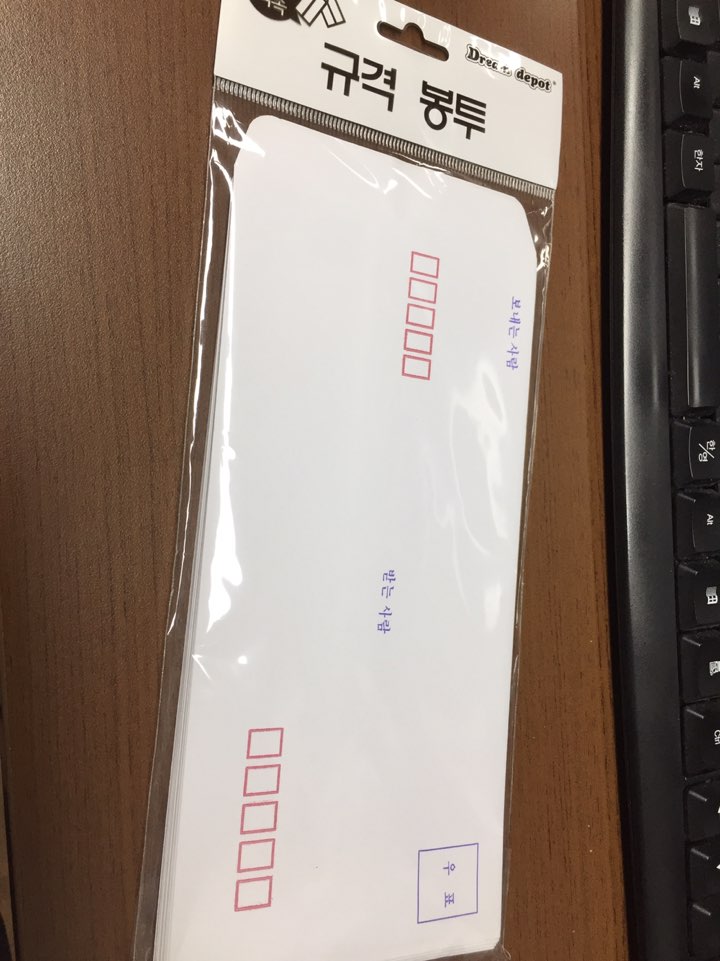 저는 이 규격봉투에 내용물을 넣어서 빠른등기로 보냈어요. 주소와 우편번호까지 꼭꼭 기재해주시고 전화번호는 선택입니다. 안쓰셔도 상관없어요!