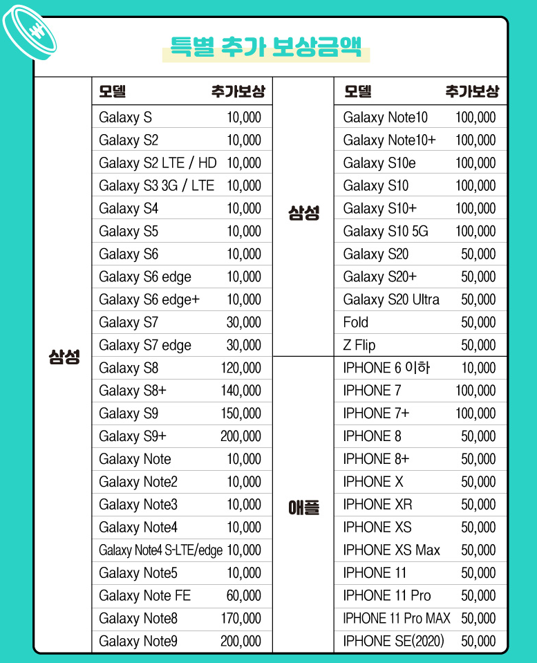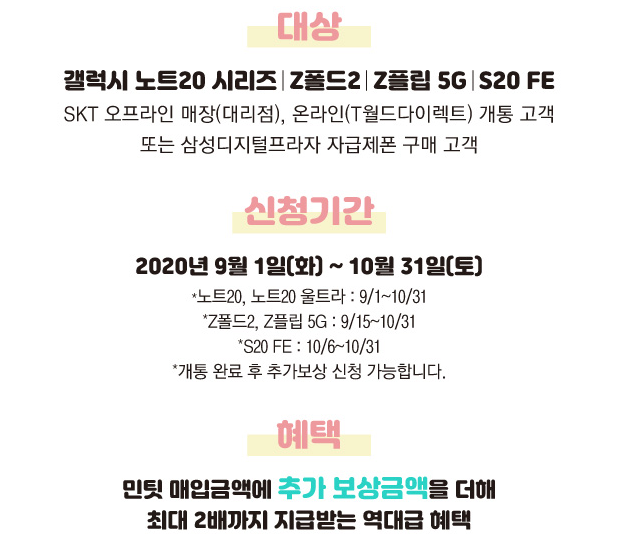 갤럭시 노트20, Z폴드2, Z플립5G, S20FE 를 구매한 사람은 기존에 쓰던 폰에 추가 보상금액을 받고 판매하는 거였습니다! 폰 상태가 아무리 구지더라도 보상판매 금액이 쏠쏠하면 팔만 하지않겠어요?