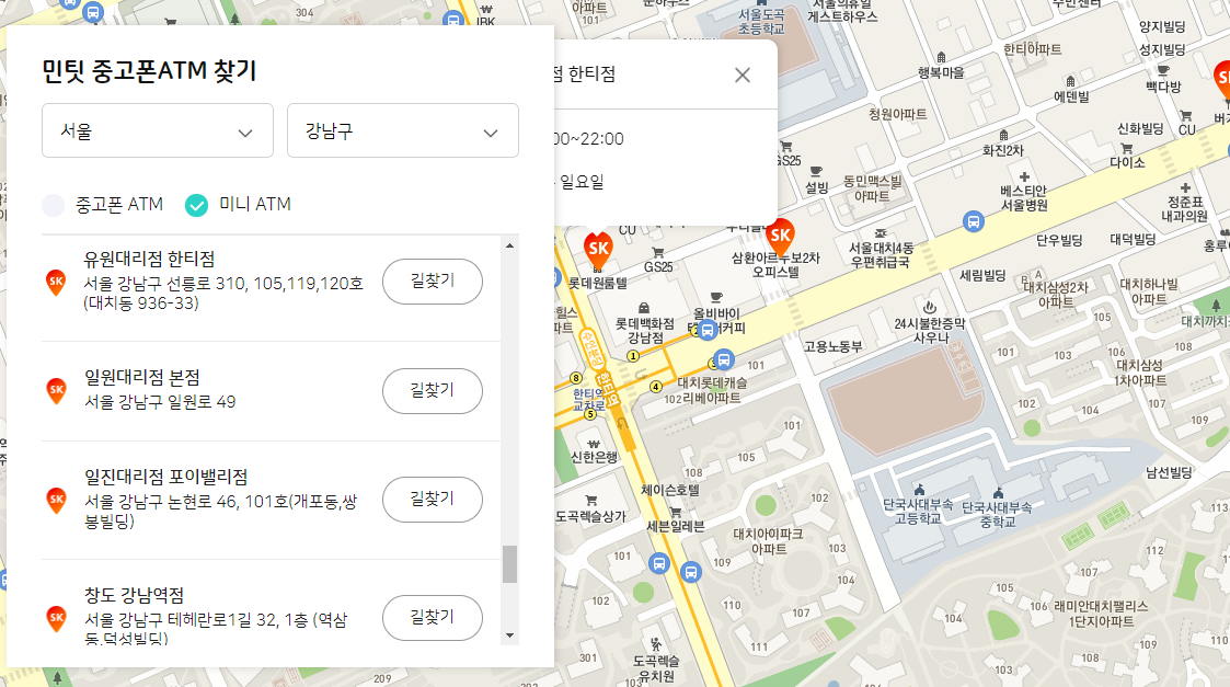 저는 SKT로 개통했기 때문에 미니ATM을 찾아갔습니다.