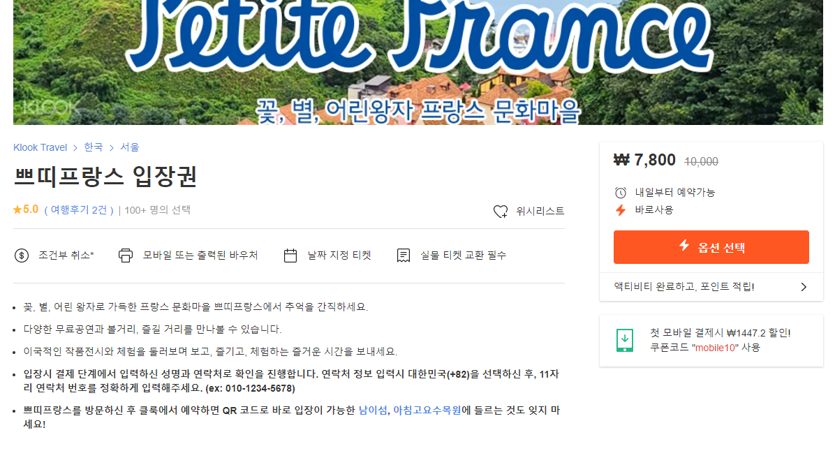 그렇지만 내 여행계획에 있는 곳이 클룩에 올라와있으면 이용도 편하고 값도 싸게 다녀 올수 있으니 자주 이용할만한 장점은 충분히 있는 것 같아서 앞으로도 많이 써보려고 합니다.