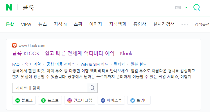 이렇게 네이버에서 클룩 검색하면 뙇 하고 뜨네요! 쉽고 빠른 예약! 이라고 써져있는데 진짜 쉽고 빠르면서도 제일 중요한건 할인이 있다는 점!