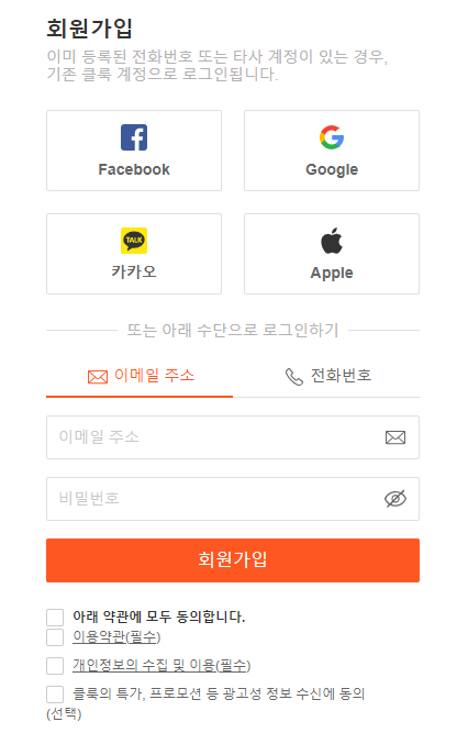 들어가면 제일 먼저 회원가입부터 하시는게 좋을 것 같은데 엄청 놀라웠던 점이 회원가입이 너무 간단하다는 점이었습니다.