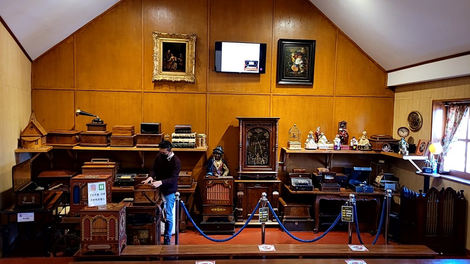 직원분이 오셔서 저렇게 셋팅을 하고계시고 그 주변에 오르골들이 가득 보이시죠?