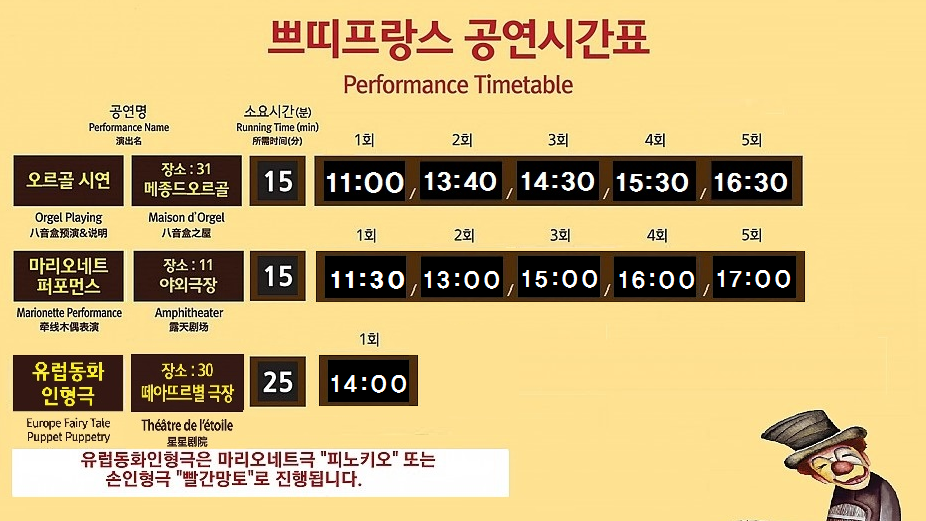 시간표 보시면 오르골 말고도 마리오네트 퍼포먼스랑 유럽동화 인형극도 있는데