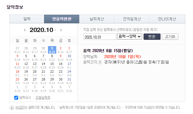 네이버에서 음력 양력 변환을 검색해보니 요런게 나옵니당!