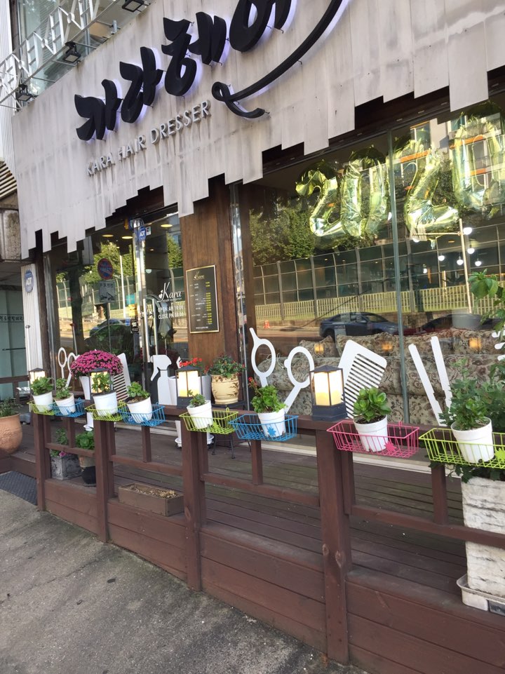 그리고 여기는 미용실인데... 처음에 화분만 보고 꽃집인가 했어요! 근데 자세히보니 유리창에 가위랑 빗, 분무기같은 그림 있구 간판보니가 OO헤어 ㅎㅎㅎㅎ 미용실이었어요!