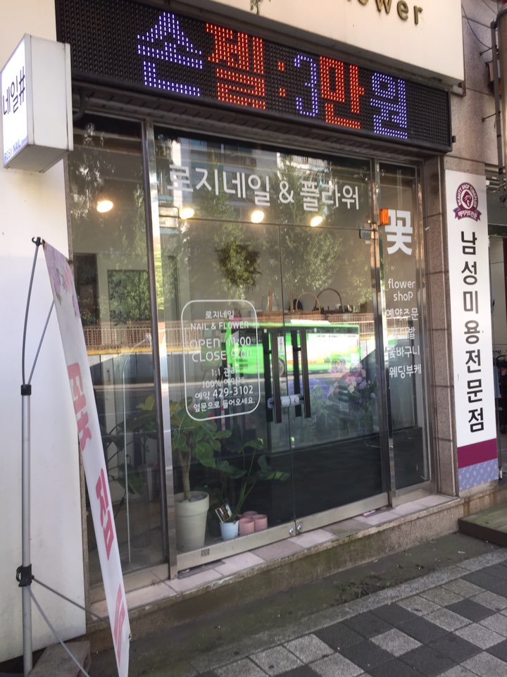 꽃집인데 네일을 같이 하네요? 막상 가게 보니 위에 미용실이 더 꽃집같은 느낌이 났었는데 ㅎㅎㅎ 저만 그런 느낌일까요? 아무튼 남성미용전문점 이라고 하네요! 남성분들도 네일 같은 걸 많이 하시려나요~